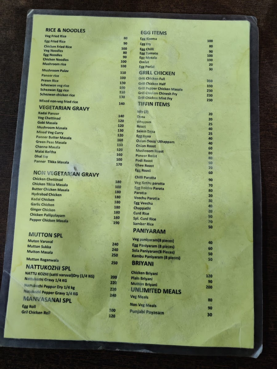 Welcome to Manvasanai Restaurant, a culinary gem located in the serene landscape of Chettipalayam, Tamil Nadu. This establishment invites you to savor an enticing array of dishes, particularly noted for their rich egg and mutton preparations. The menu boasts an impressive selection, including Egg Keema and Mutton Varuval, each thoughtfully priced to reflect their quality.
